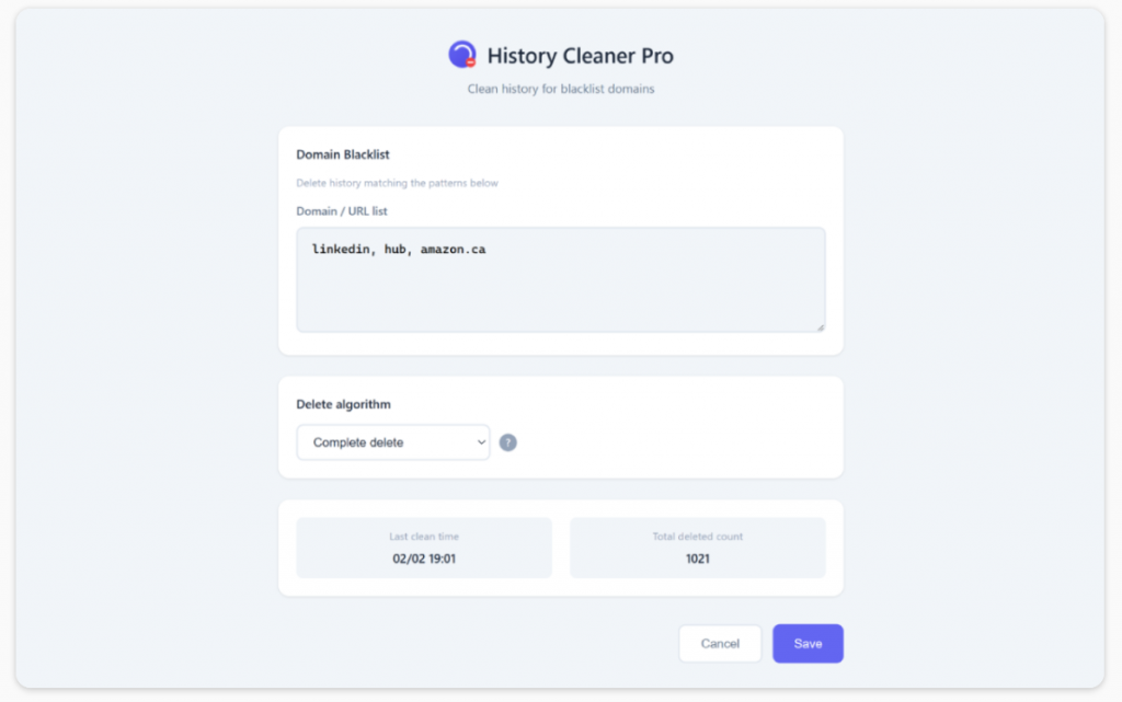 History Cleaner Pro is a browser extension designed to help protect your privacy by removing browser history records.